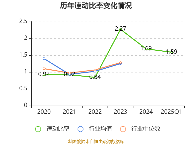 2025年第一季度,公司流动比率为2.23,速动比率为1.59。