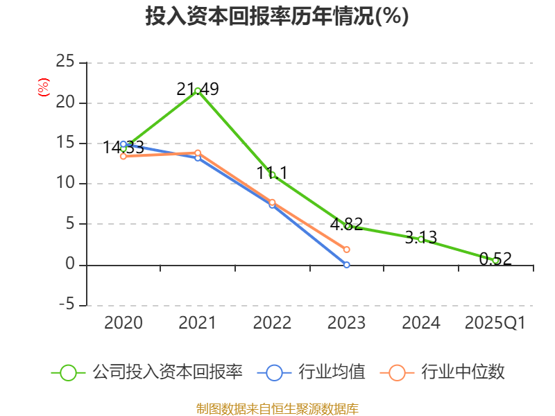 盈利能力方面, 2025年一季度公司加权平均净资产收益率为0.51%,同比下降0.09个百分点。公司2025年第一季度投入资本回报率为0.52%,较上年同期下降0.03个百分点。
